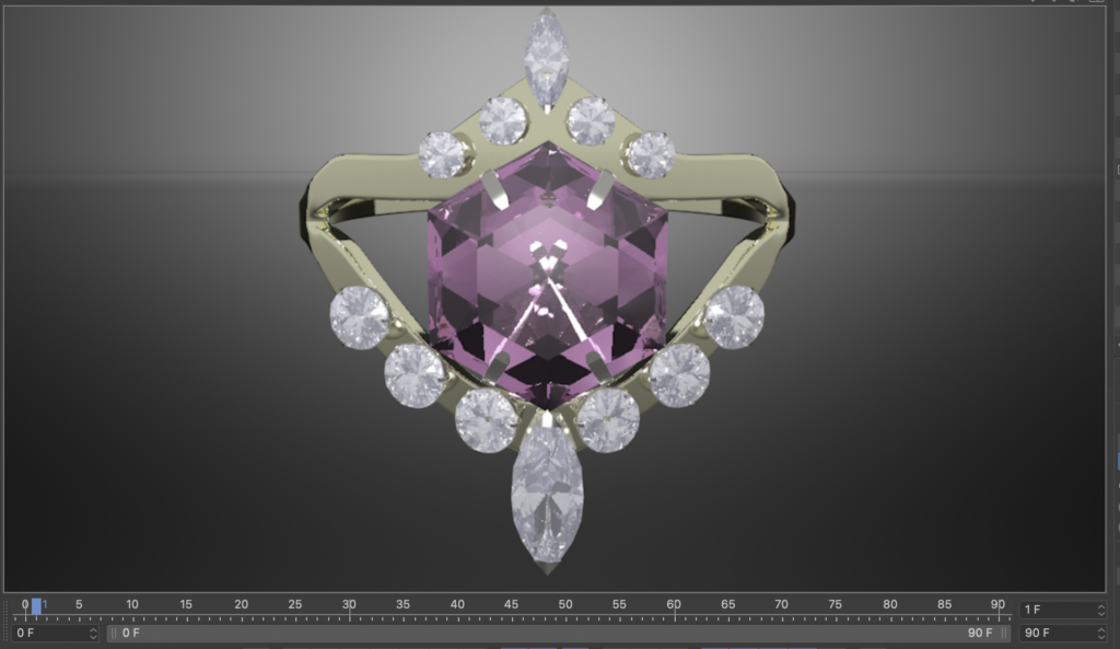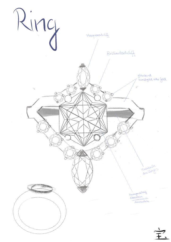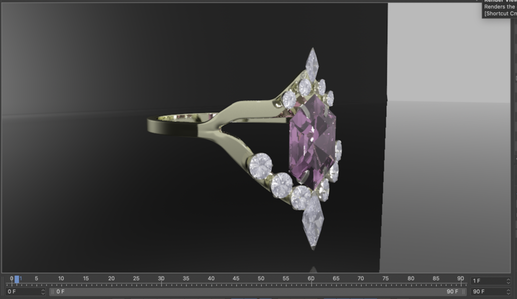 A ring modeled in Cinema 4D, based on an original sketch I designed